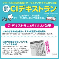CIは虫歯菌の酵素に働くので、スクロースが存在していてもプラークの形成を抑制します。CIはキシリトール等のような「虫歯菌が利用できない糖」ではなく、「虫歯菌に糖を利用させないオリゴ糖」です。